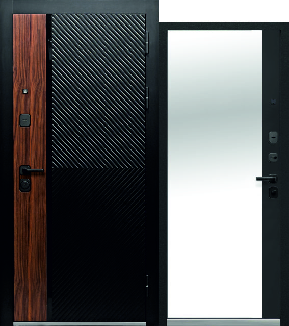 Дверь входная Luxor 2МДФ Дуб Диагональ Зеркало