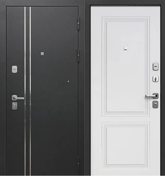 Дверь входная Luxor Букле черный Эмалит белый Велюр грей софт