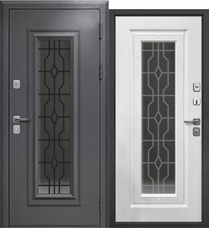 Входная дверь Ferroni 9 см 2D Стеклопакет Букле Графит фигурная вставка