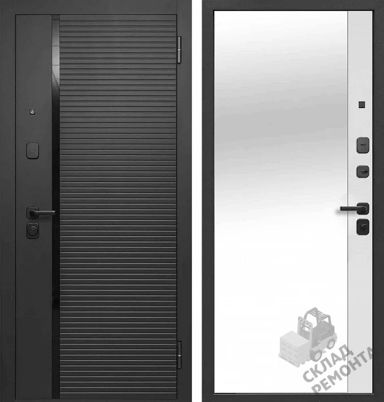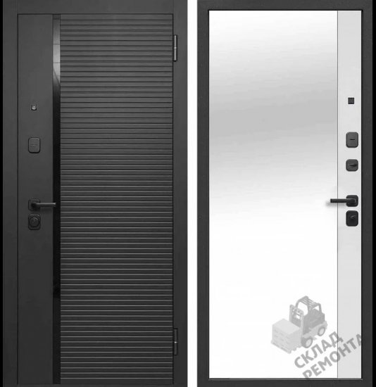 Входная дверь Ferroni Черное Зеркало Сатин черный/Эмалит белый