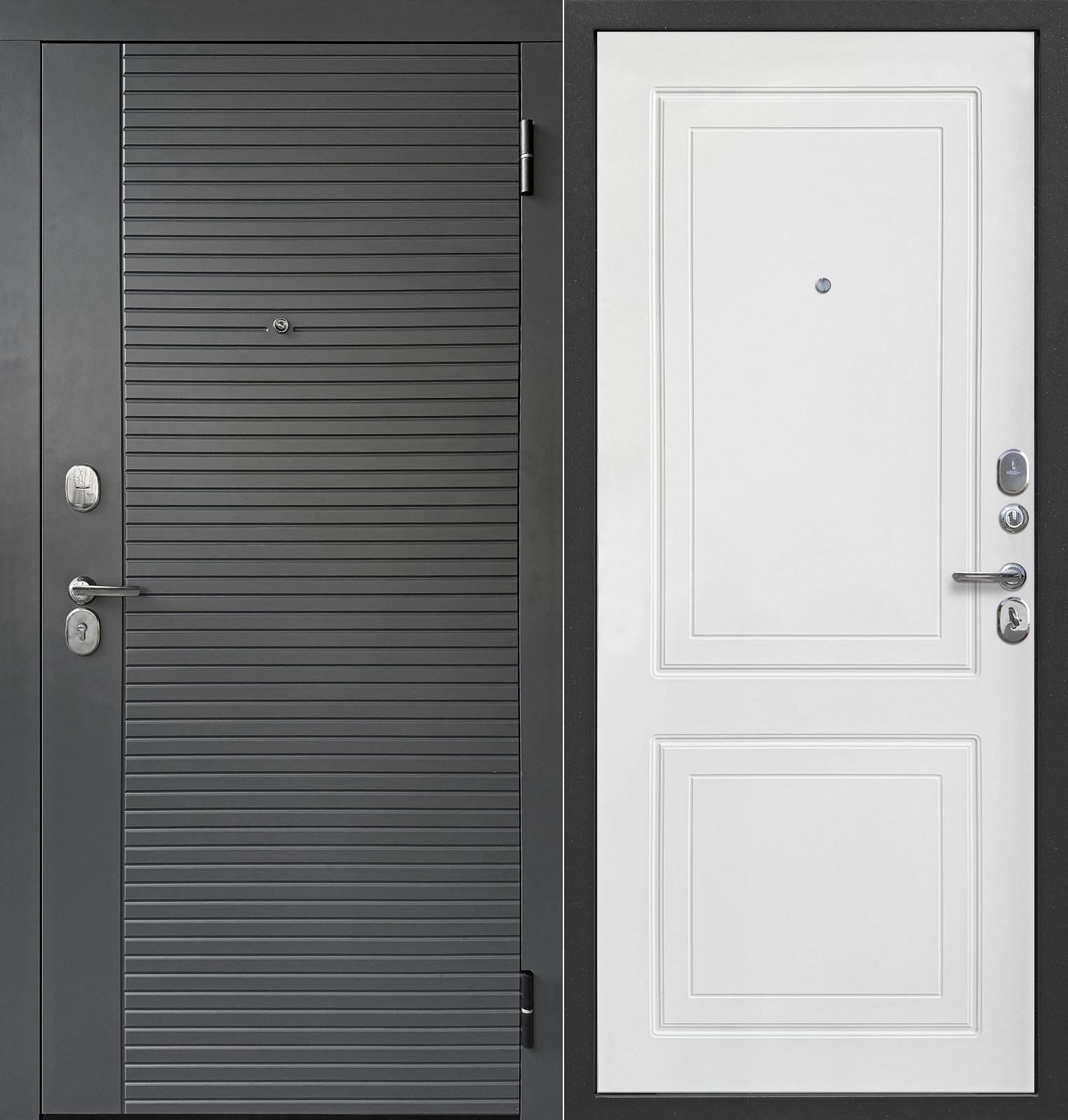 Входная дверь Ferroni Гарда 2МДФ Графит/Белый Линии