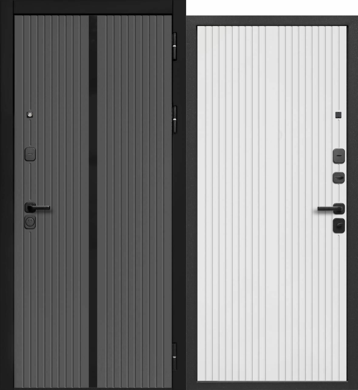 - Внешнее покрытиефрезерованная МДФ-панель 8 мм, цвет – «графит», наличники - «черная шагрень». Декоративная вставка - черная лакобель