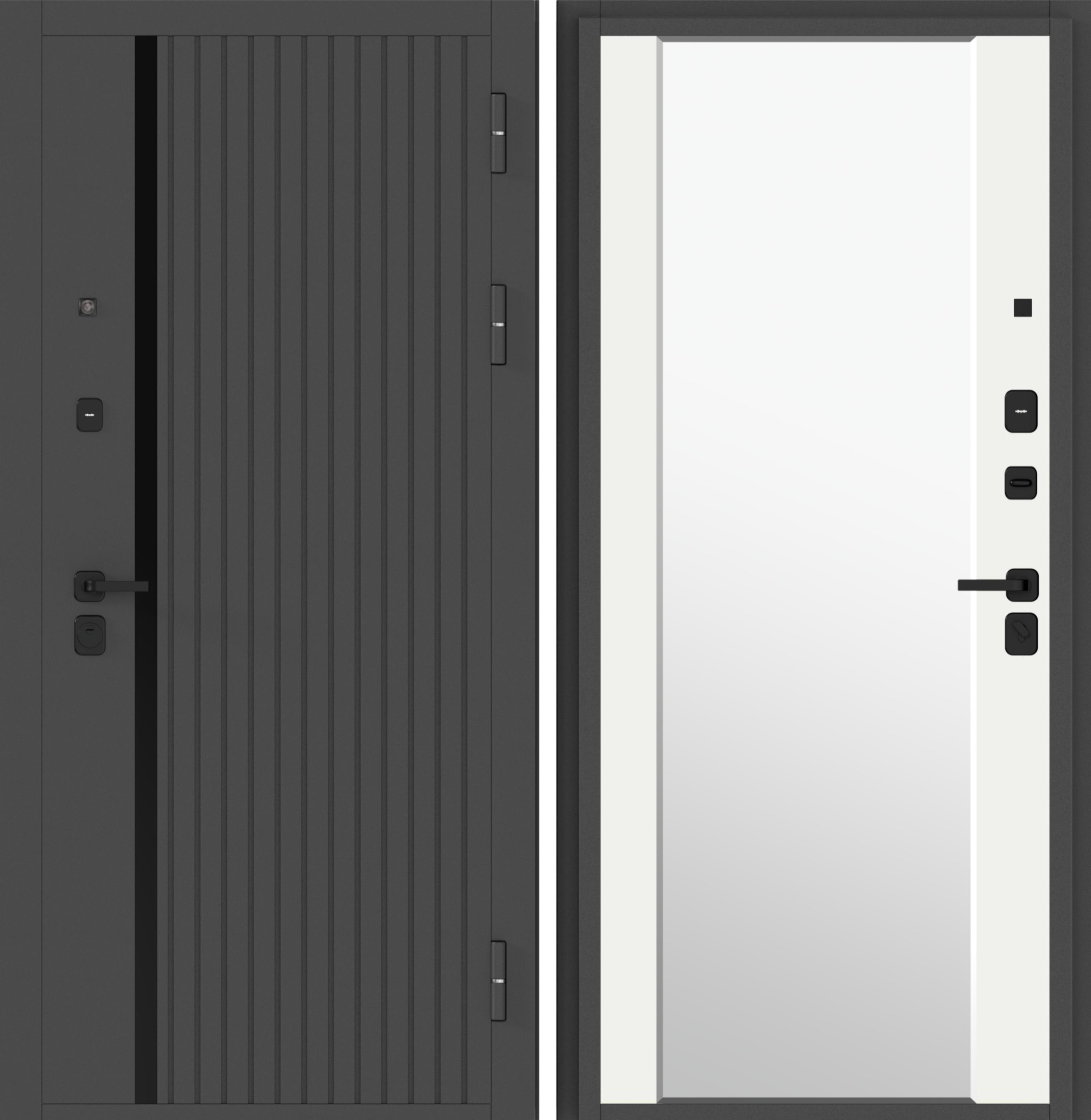 Входная дверь Цитадель 10 см 2МДФ Букле графит Зеркало Эмалит Белый